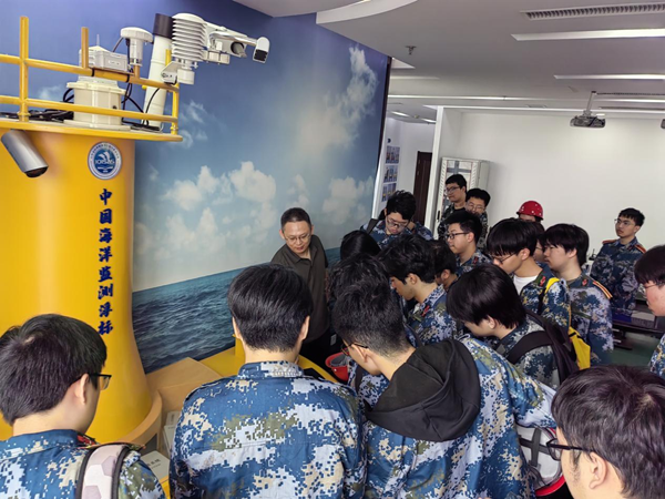 在全重室展厅,科研处副处长于雨为师生系统介绍了研究所及全重室的发展历程、研究方向与重要成果。围绕海洋领域核心传感器、立体观测平台等监测装备,他详细讲解了全重室在海洋环境监测、数据智能感知等方面的技术突破,并重点展示了标志性成果——海洋监测浮标。该浮标集成多类传感器并具备自主决策能力,可实现海洋参数的长期、实时、智能化观测,是我国海洋监测装备迈向智能化的重要代表。