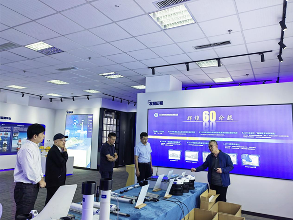 2025年9月25日下午,中国工程院科技战略咨询重点项目“数智时代透明海洋发展战略研究”项目组主要成员哈尔滨工程大学海洋科技发展战略研究院秘书长门志国、首席专家李修志、研究员刘振宇,以及天津大学海洋科学与技术学院王晨旭一行,到山东省科学院海洋仪器仪表研究所及海洋领域全国重点实验室开展专题调研。